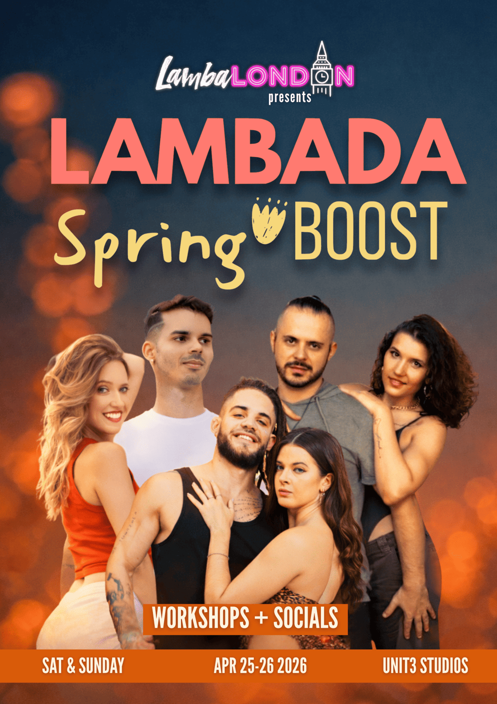 A full weekend with 4 hours of classes + 6 hours of socials, led by amazing international artists. We’re also introducing a Lambada Choreo Battle — where leads and follows get the chance to level up their solo skills, creativity, and confidence on the floor